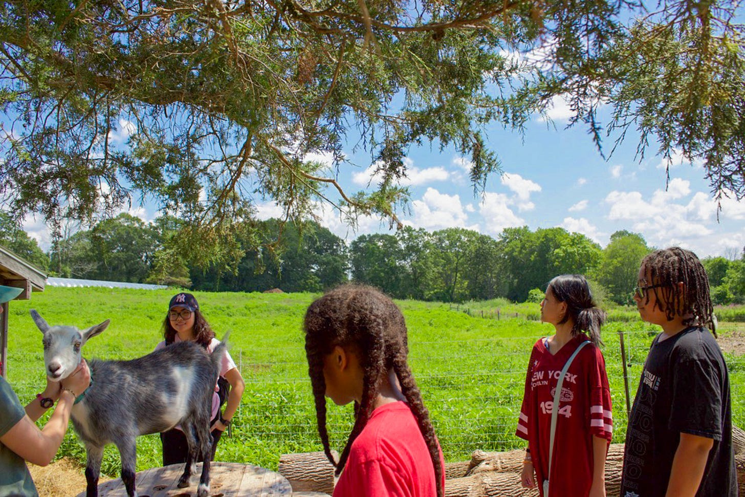 Earlier that morning, the group had visited a farm in Concord. They petted goats, learned about feeding and caretaking, and observed how animals roam and rest in the sun. Some of the kids cradled rabbits in their arms, giggling as small noses twitched against their hands. Now, still buzzing from that experience, they sat lakeside, ready for the next step in their outdoor adventure: learning how to fish.