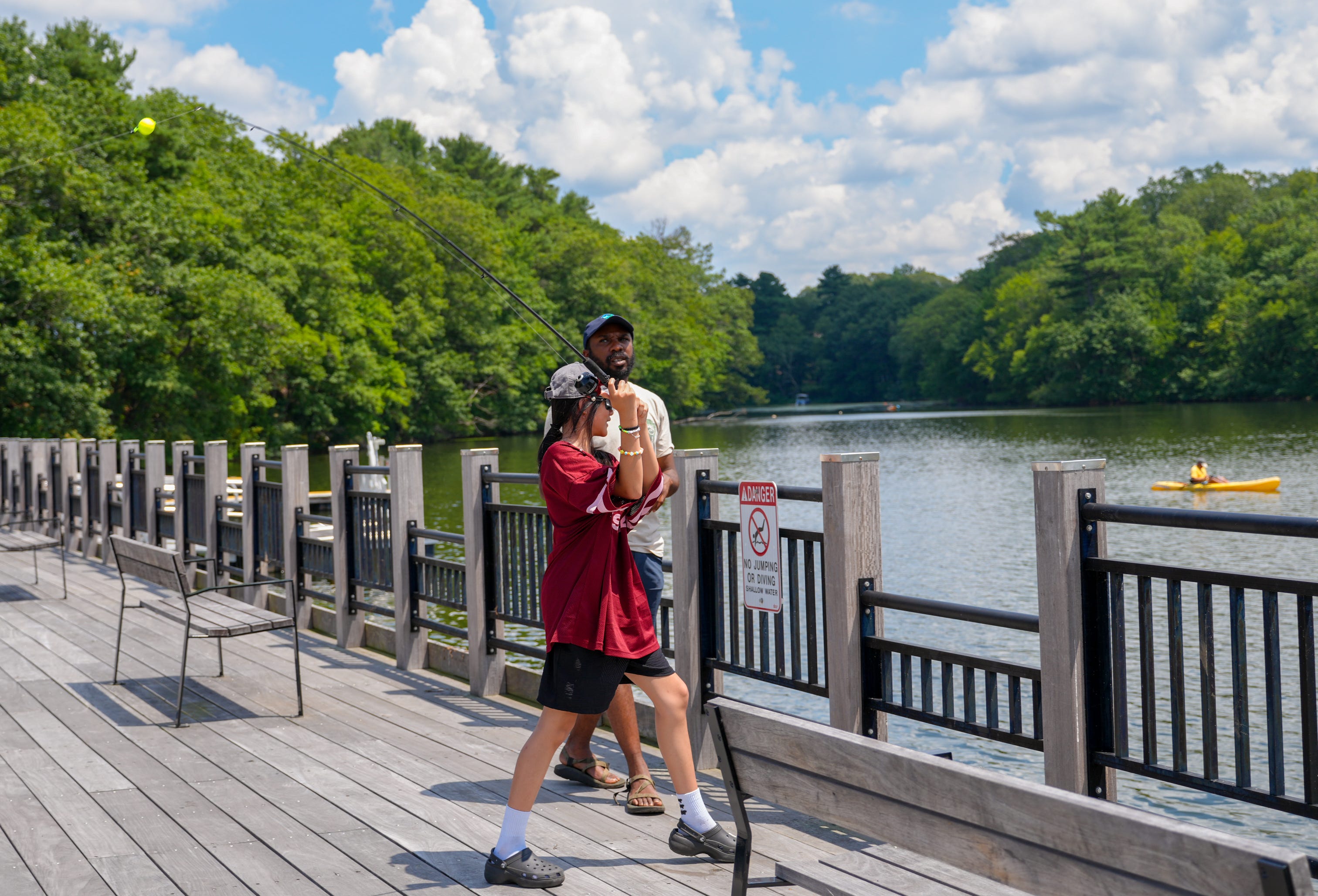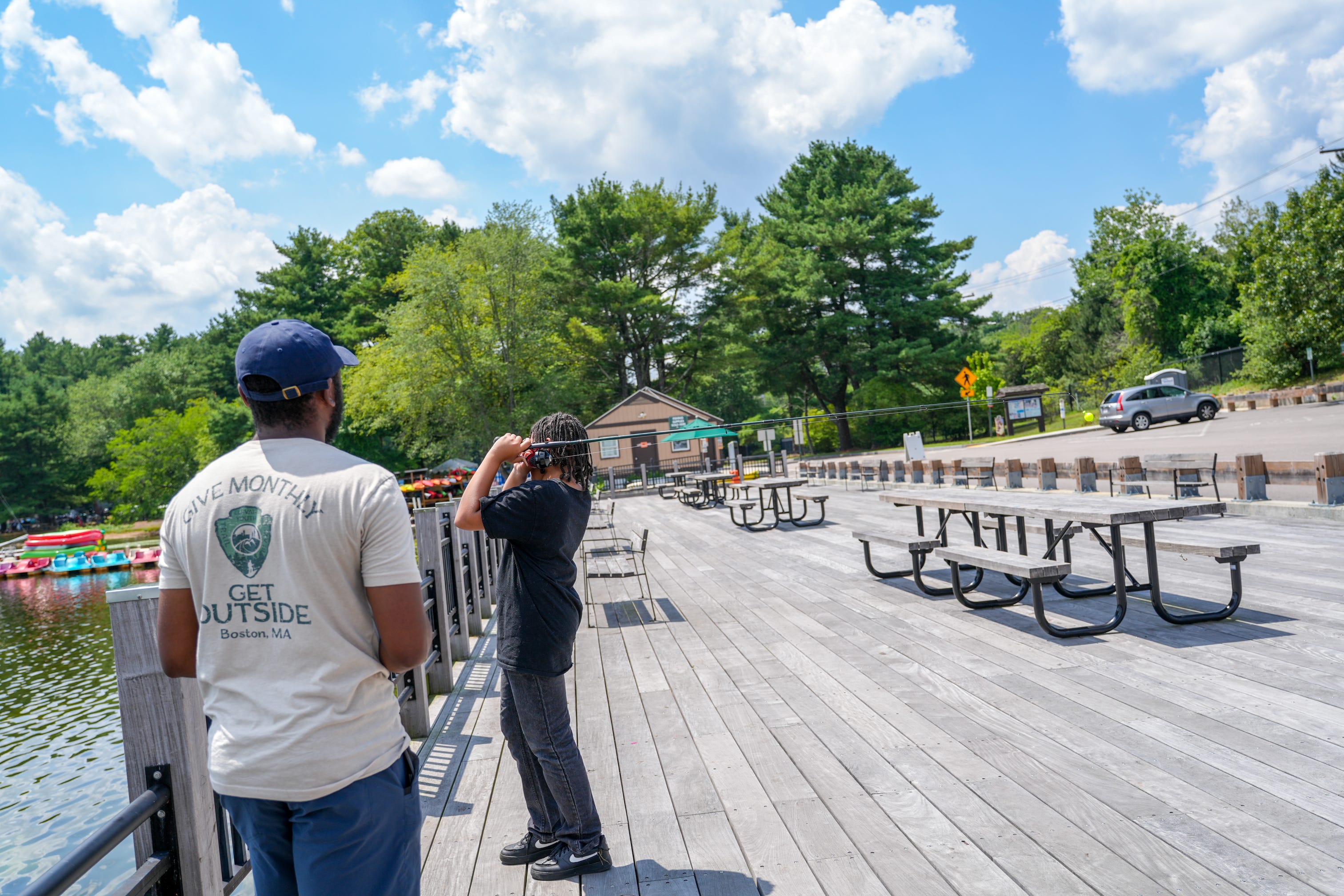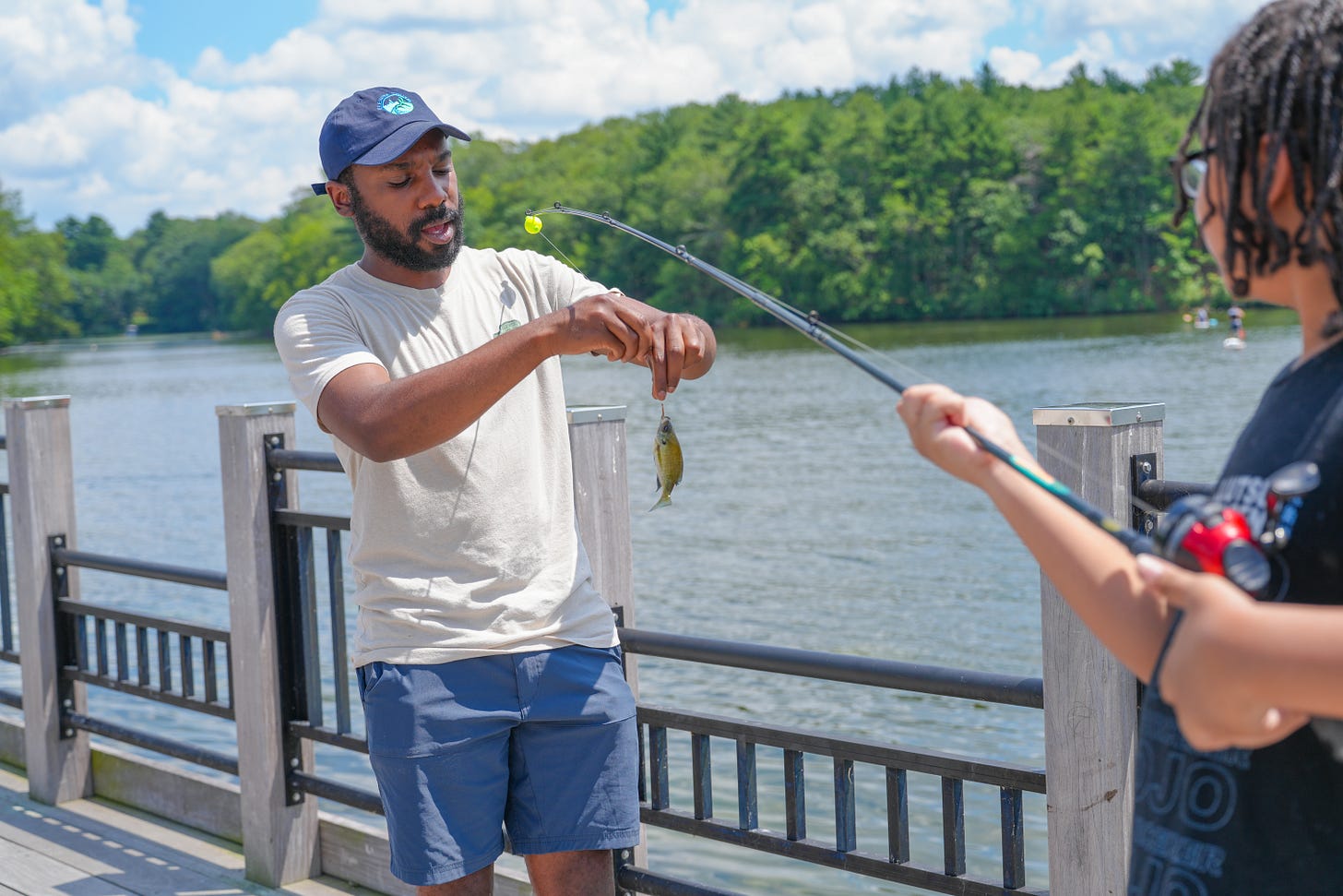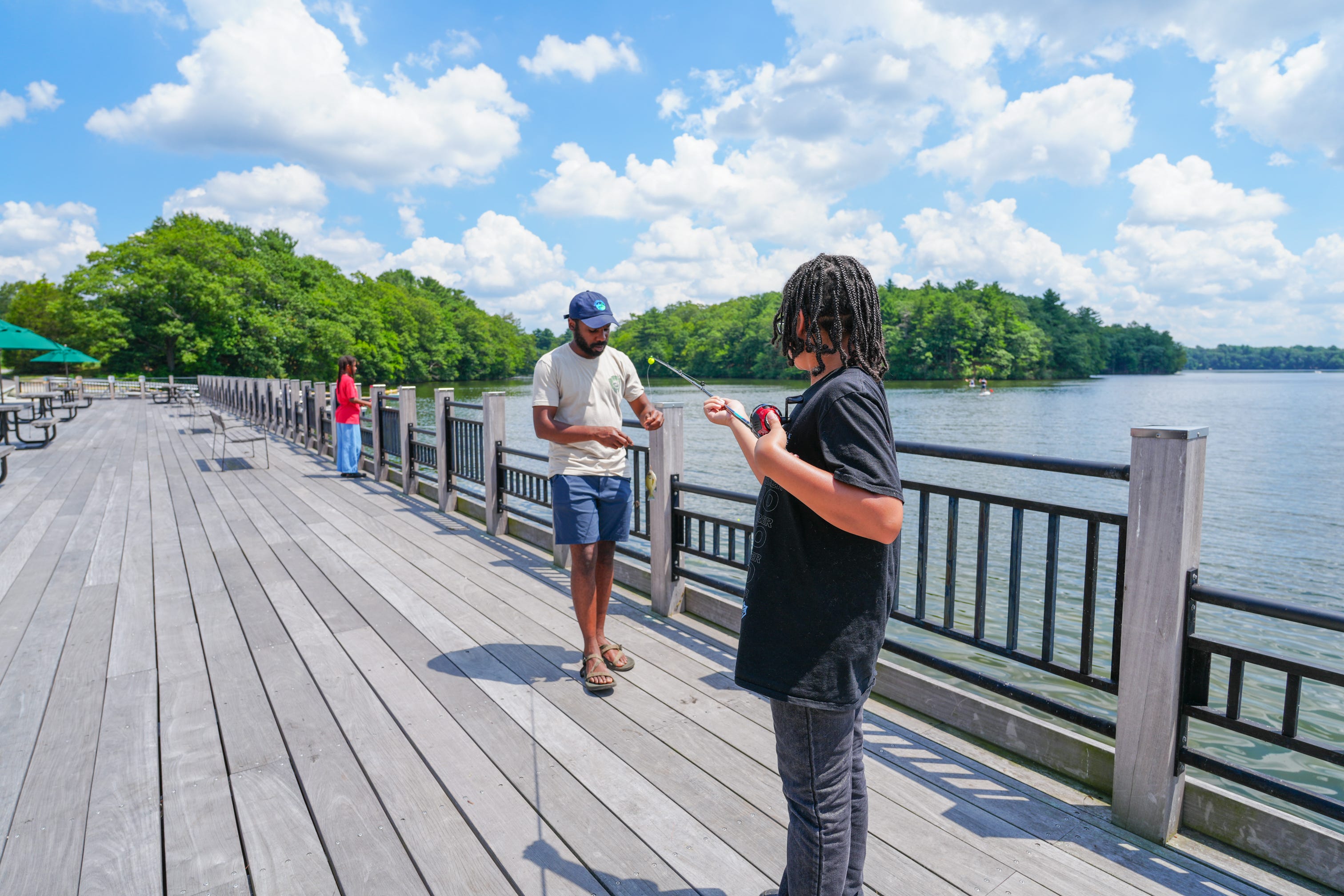 On a hot summer day in July, I watched a group of young people from across Boston gather at a picnic table overlooking Lake Cochituate. The air shimmered with heat. The lake stretched out in front of them, calm and patient. On the table, small cups of live bait wriggled and popped, tiny movements drawing curious eyes closer.