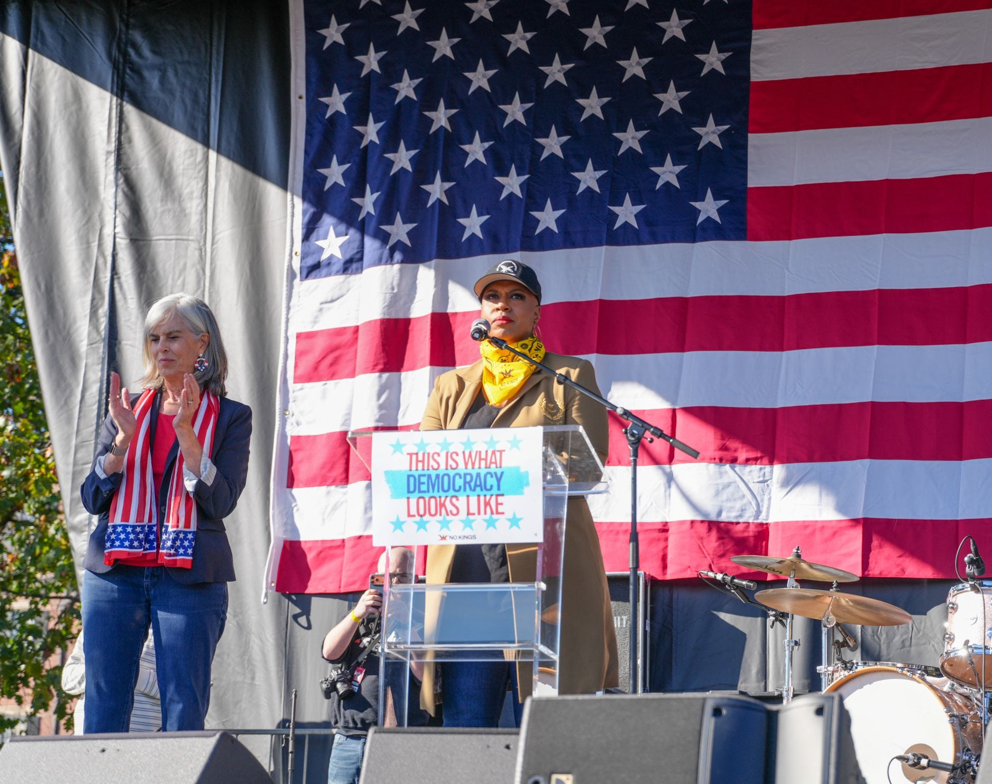 Later in October, I was invited to document Congresswoman Ayanna Pressley’s speech at the #NoKings rally in Boston, where she called on us all to “Give a Damn”—to show up for democracy, for each other, for the future. I watched her move through the crowd with tenderness, pausing for conversations, hugs, listening. She reminded us that activism lives not only in speeches but in how we hold space for one another.